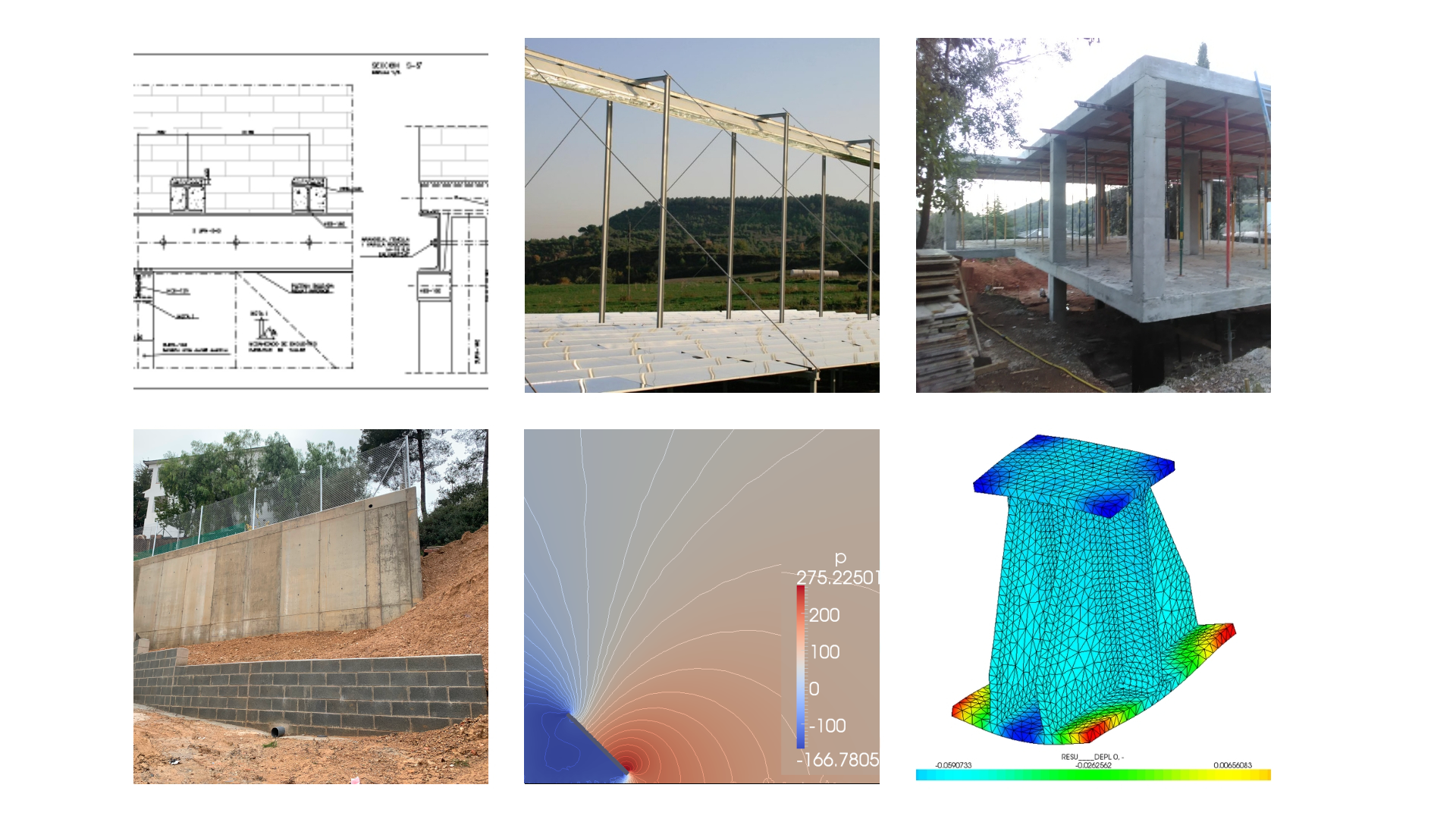 També hem desenvolupat estructures per a projectes d’enginyeria i per a les energies renovables, amb èmfasi en les càrregues de vent. Alguns exemples ha estat instal·lacions fotovoltaiques en cobertes d’edificis, reforços estructurals per noves instal·lacions.